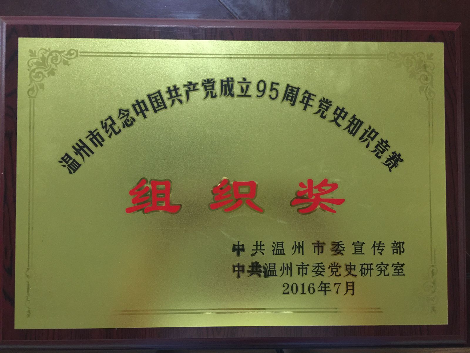 我院荣获“温州市纪念中国共产党成立95周年党史知识竞赛”组织奖