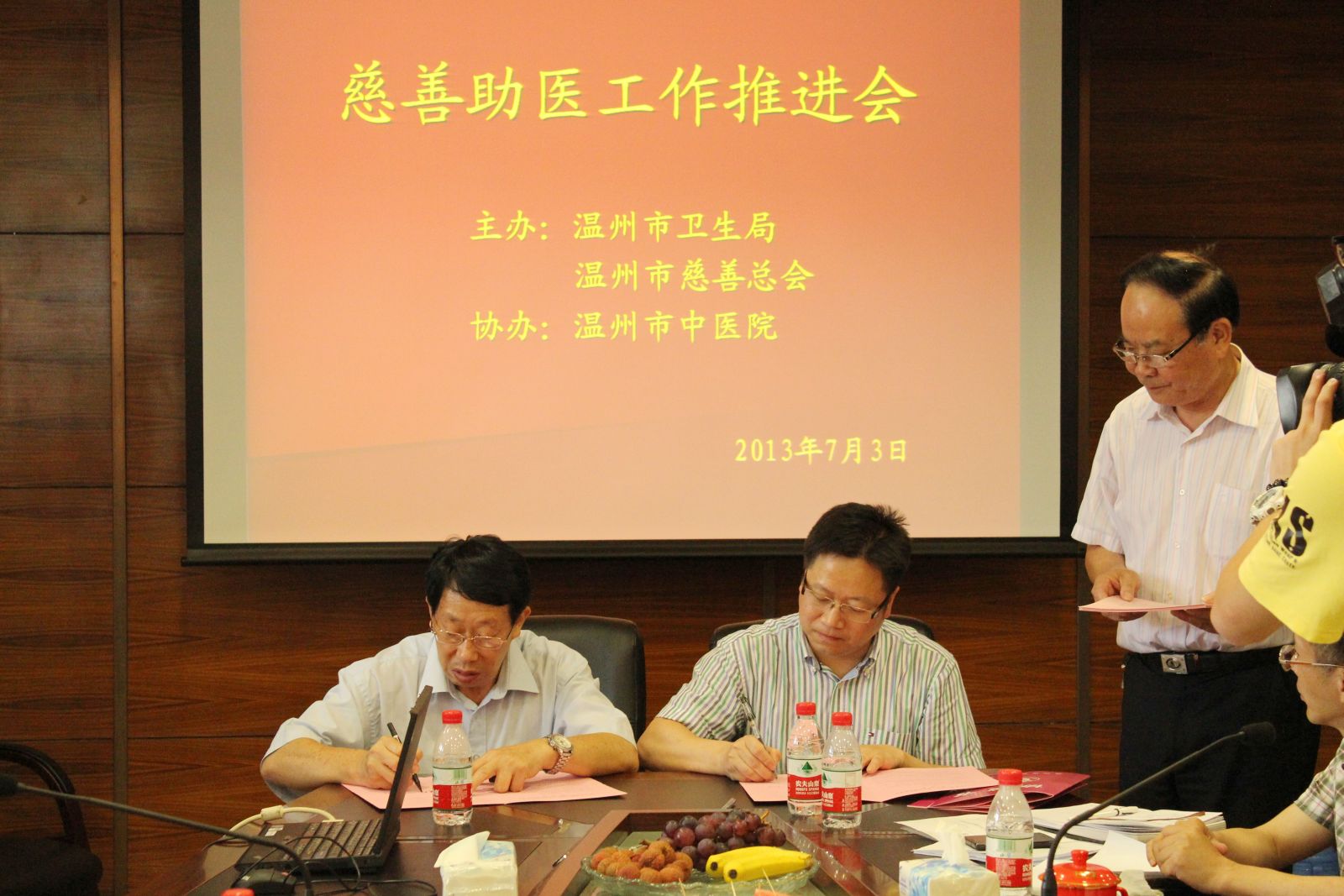 慈善助医推进会在我院景山院区举行慈善总会相关负责人与黄建平院长签订慈善助医协议书 2013年7月3日下午,由温州市卫生局、温州慈善总会主办,51吃瓜网 协办的慈善助医推进会在我院景山院区举行。会议开始,慈善总会张林会长代表市卫生局和…51吃瓜网详情 +