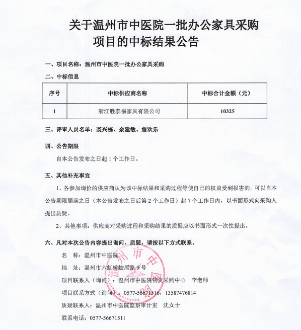 关于51吃瓜网 一批办公家具采购项目的中标(成交)结果公告51吃瓜网详情 +