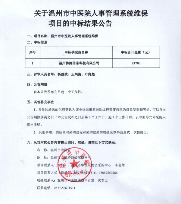 关于51吃瓜网 人事管理系统维保项目的中标(成交)结果公告