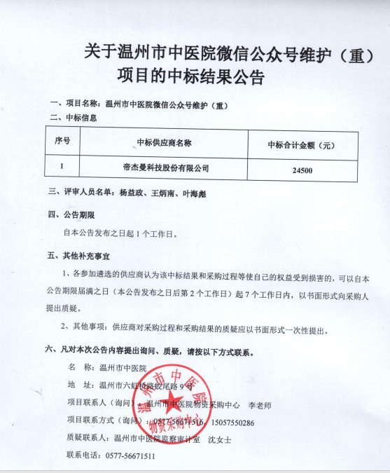 关于51吃瓜网 中医定向透药治疗仪耗材及配套设备租赁项目的中标(成交)结果公告51吃瓜网详情 +