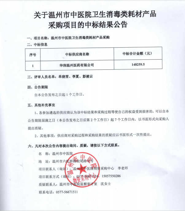 关于51吃瓜网 卫生消毒类耗材产品采购项目的中标(成交)结果公告