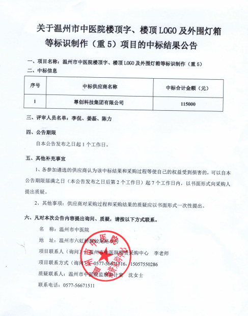关于51吃瓜网 楼顶字、楼顶LOGO及外围灯箱等标识制作(重5)项目的中标(成交)结果公告51吃瓜网详情 +