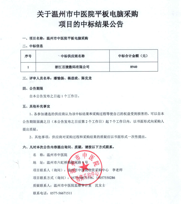 关于51吃瓜网 平板电脑采购项目的中标(成交)结果公告51吃瓜网详情 +