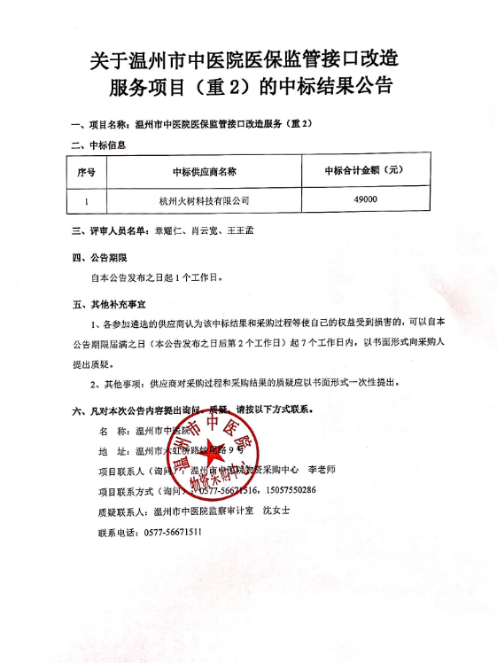 关于51吃瓜网 医保监管接口改造服务(重2)的中标(成交)结果公告