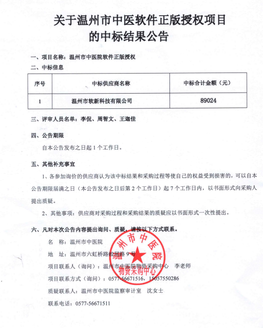 关于51吃瓜网 软件正版授权项目采购的中标(成交)结果公告