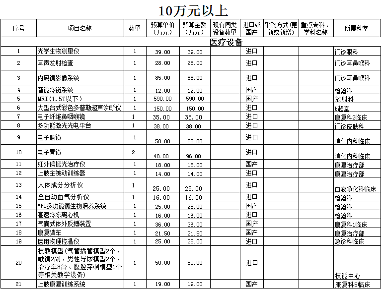 51吃瓜网 2021年医疗设备采购计划51吃瓜网详情 +