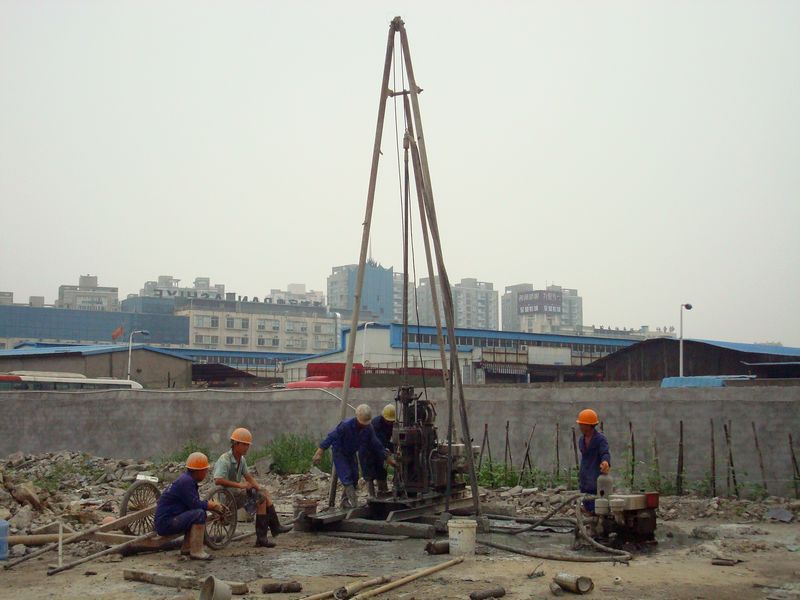 工人们在我院新院工地打桩取样