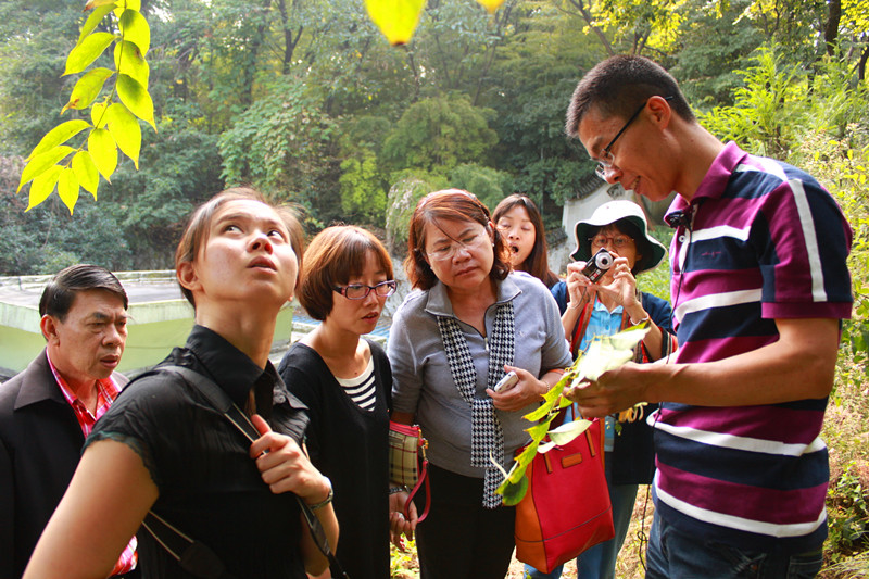 走出博物馆,在百草园内拾阶而上,每隔一米都能发现多种药材,在院药剂科主任王显武的讲解下,龙葵、鲜石斛、金钱草、木槿、薄荷……一个个草药被识别出来。许多家长带着孩子,一边听讲解一边手拿相机拍个不停。在呼吸新鲜空气、欣赏花园景色的同时,也让孩子从中了解中医药知识,培养了学习传统中医的浓厚兴趣,可谓一举多得。