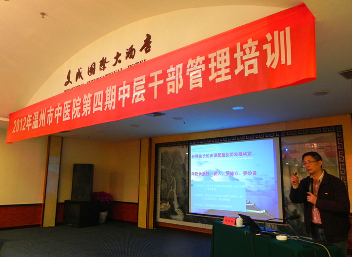 12月29日-30日,2012年第四期中层干部培训在文成举行,此次培训邀请了中南大学湘雅医学院博士谭家驹教授作主题为“医院领导干部管理艺术”的专题讲座,院领导班子、中层干部80余人参加了培训。
