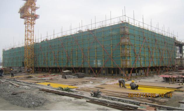 A区(主楼)完成完成地下室底板支模架搭设,进入剪力墙施工