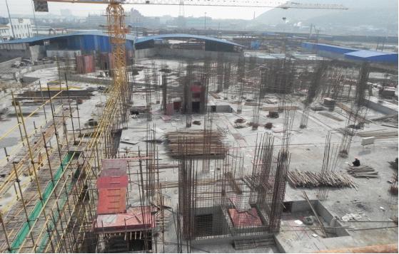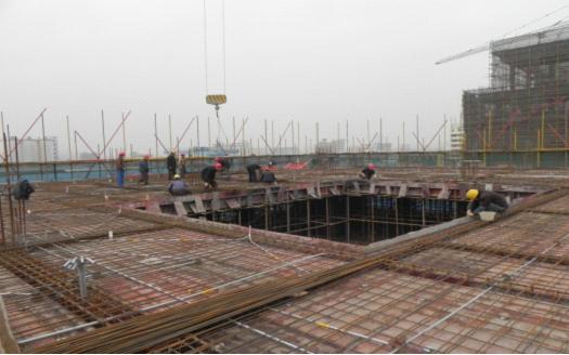 裙房三层顶板钢筋板扎,1月25日完成混凝土浇筑