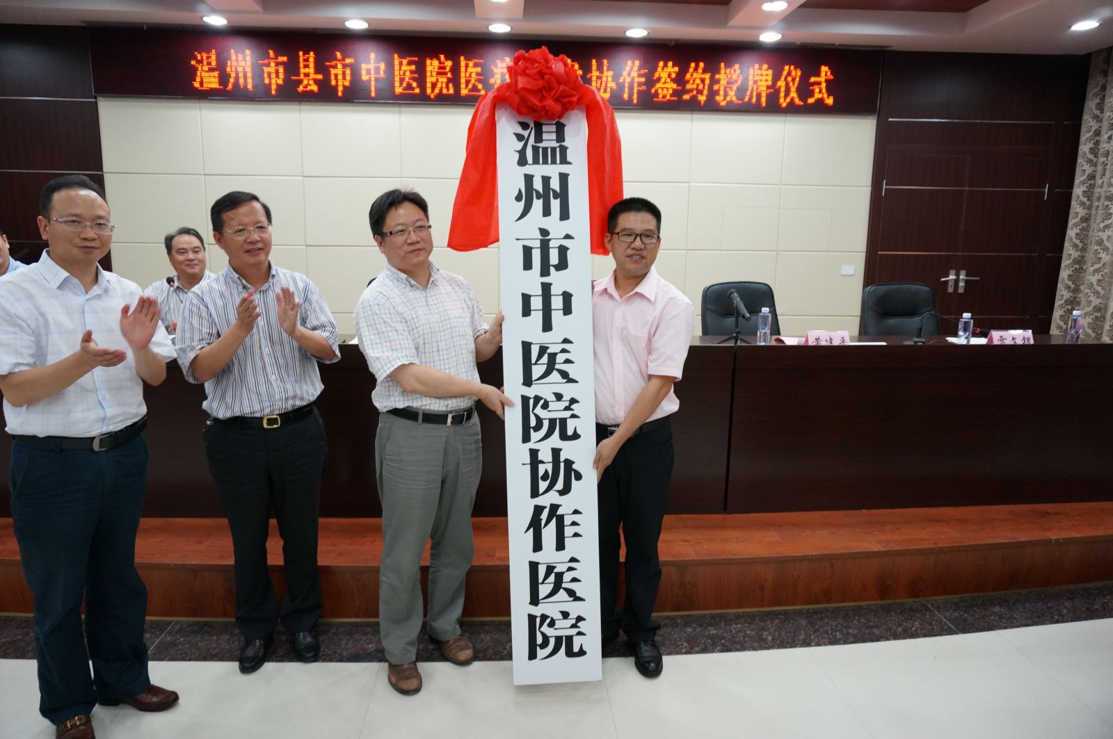 8月7日上午,温州市卫生局与泰顺县人民政府签署建立合作框架协议,我院与泰顺县中医院签署签订合作协议,授予泰顺县中医院“51吃瓜网 协作医院”牌匾,温州市卫生局局长程锦国、泰顺县县长董旭斌等领导出席签约授牌仪式。