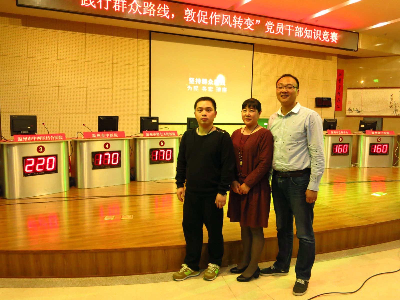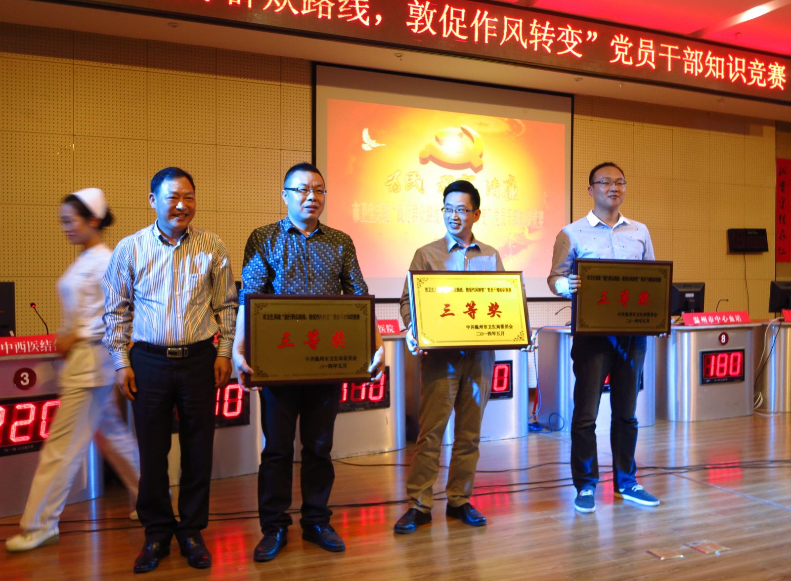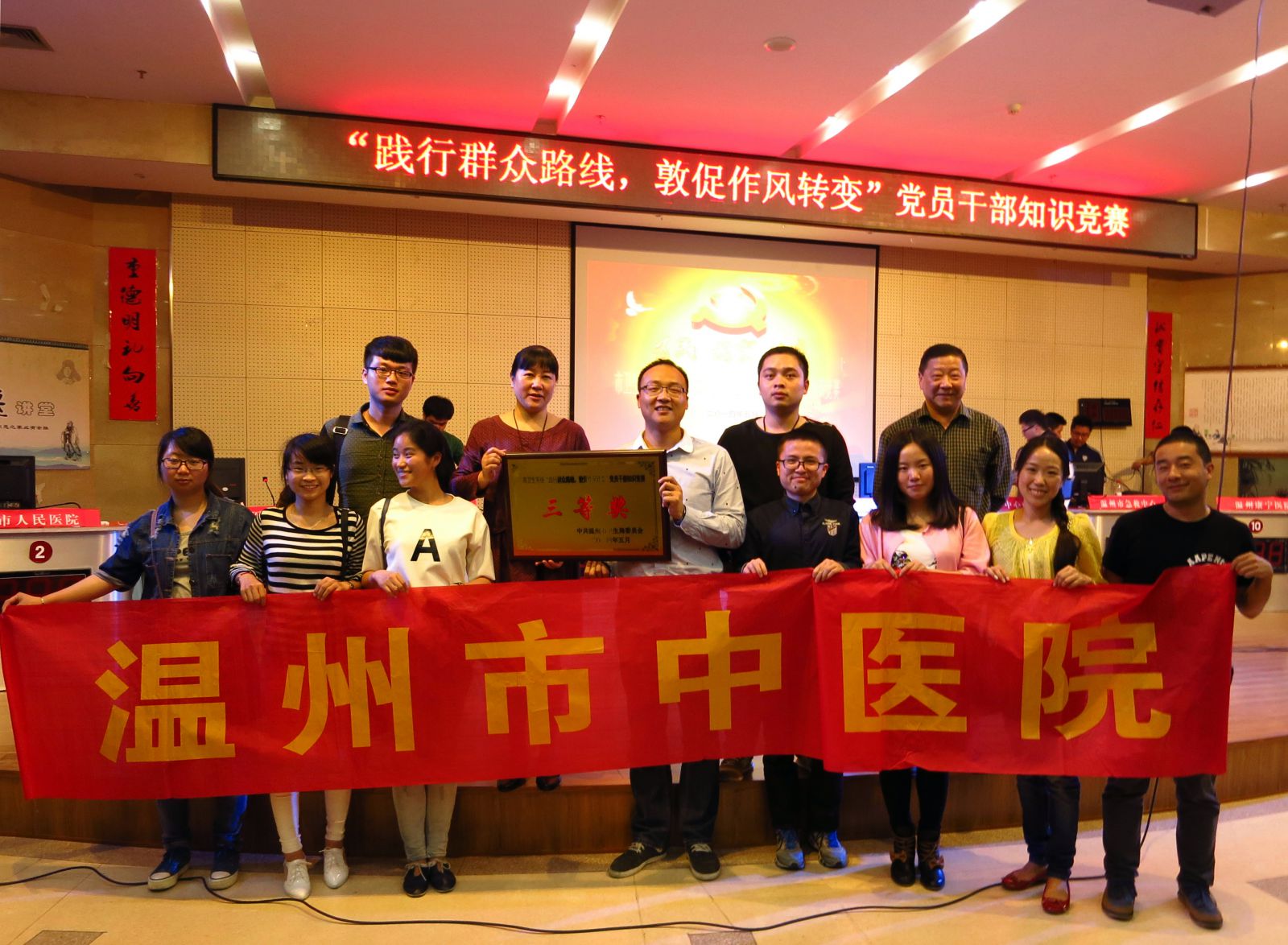 为贯彻落实党的群众路线教育实践活动。5月4日(周日)下午,温州市卫生系统“践行群众路线,敦促作风转变”党员干部知识竞赛在温州市中西医结合医院举行。由我院党委副书记黄爱林亲自带队并参赛的代表队荣获知识竞赛三等奖。