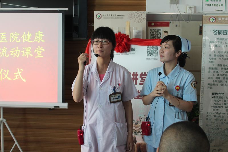 6月9日下午,健康大讲堂之流动课堂在大士门院区门诊二楼正式启动。此期课堂由我院针推科郑士立主任团队成员潘胜莲医生主讲三伏天如何进行冬病夏治。