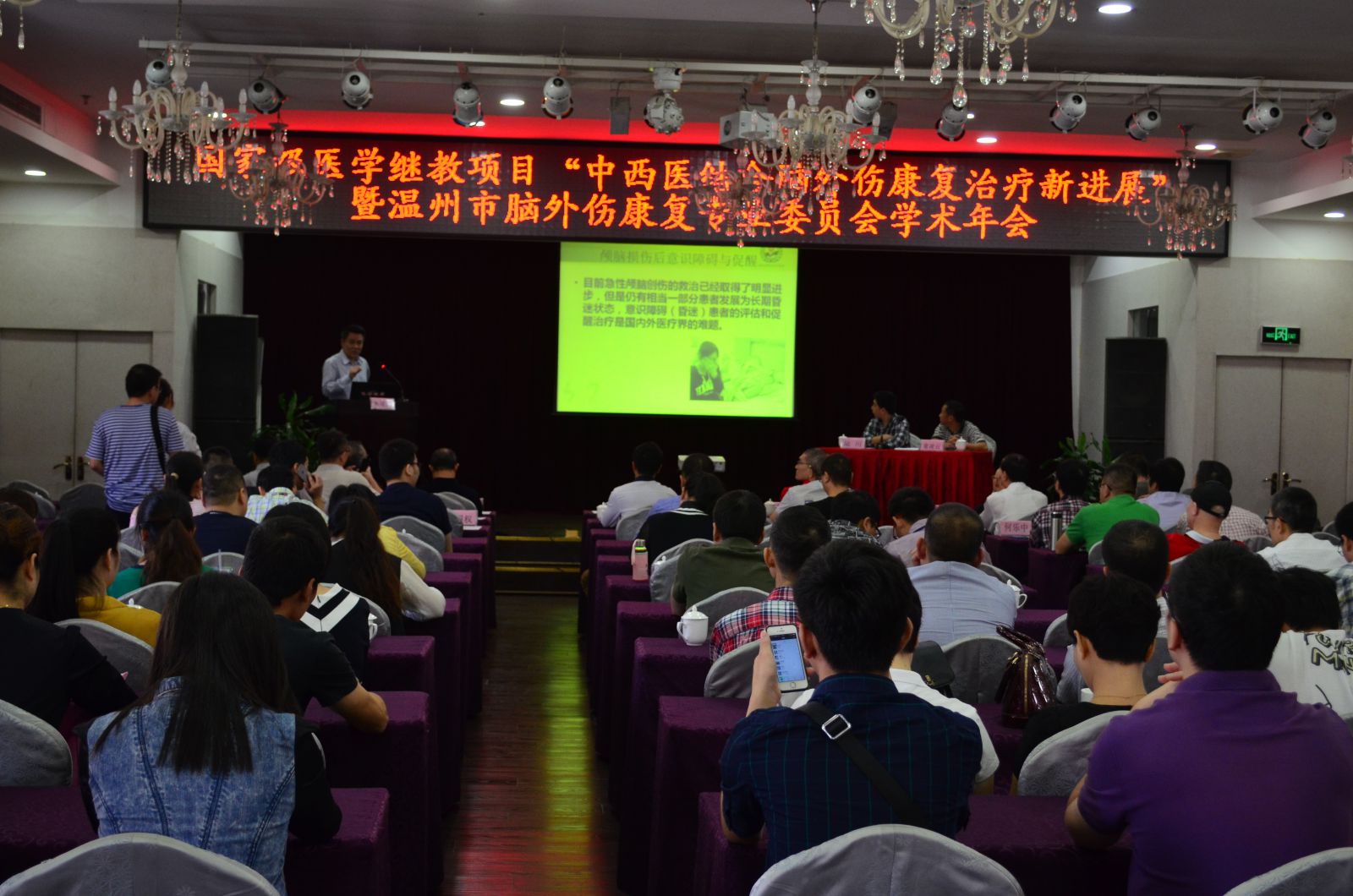 康复二科医师张垣、吴登宠、康复治疗师林大样也登台演讲。现场到场人数超过200人,会上学员们学习了脑外伤后意识障碍与处理,常见并发症和后遗症的处理,高压氧治疗、吞咽功能检查、肉毒素治疗等在脑外伤患者中的应用,并就真实的病例分析加以更深入地了解和探讨,现场学习氛围浓郁,提问积极,反响热烈。下午郑伟明主任主持召开了脑外伤康复专业委员会2015年第2次全体委员大会,会上就下一年度的年会及活动等做了讨论和布置。