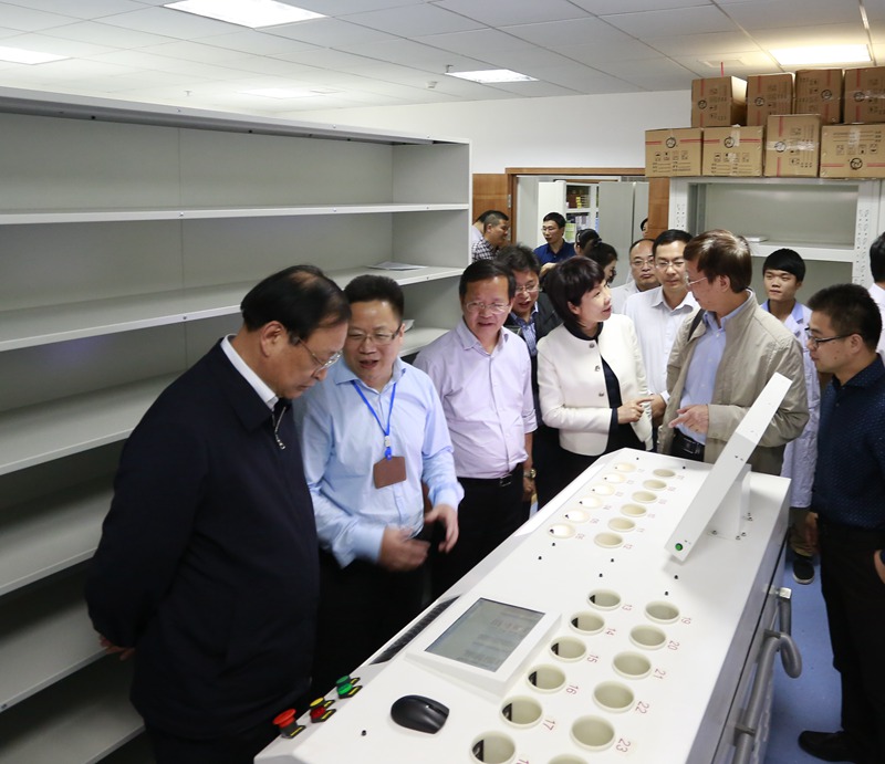王国强一行参观了六虹桥新院区西药房的自助包药机,自助包药机采用实时和预配两个窗口,优化了药房的配药流程;参观了新院门诊中草药房投入使用的颗粒机,颗粒机的使用减少了药房配药人员的工作量。王国强副主任还认真听取了各科负责人的汇报,询问工作情况,倾听基层意见。