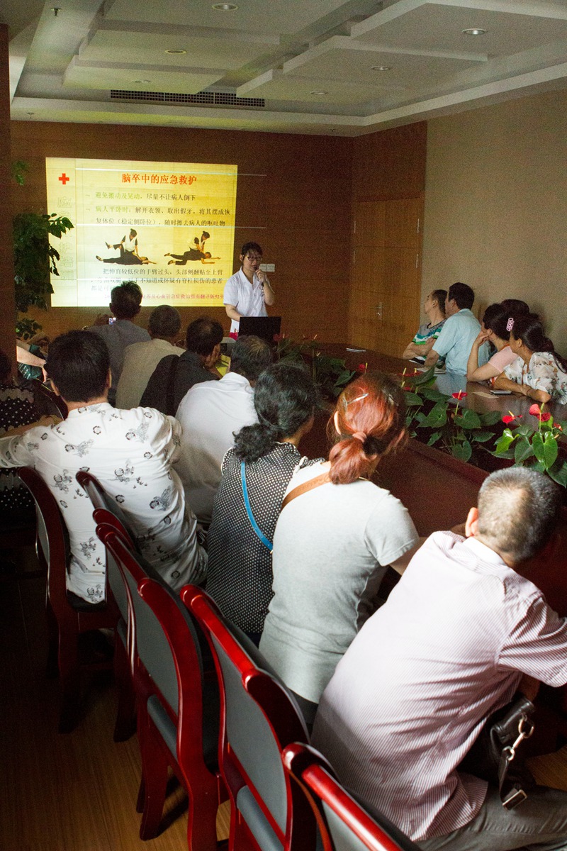 此外,急诊科徐卡医生还为市民上了一堂脑中风防治知识课,现场演示了脑中风的急救方法,受到市民的欢迎。