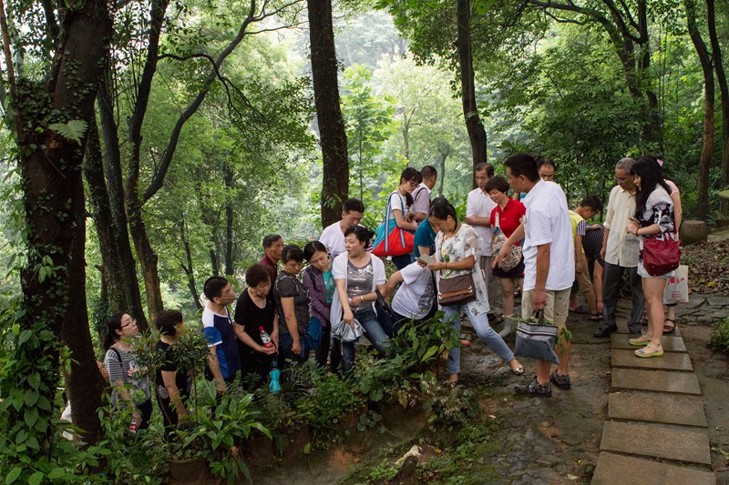 进入市中医院景山院区的百草园,山上雨天路滑,蚊子多,但是在市中医院药剂科副主任朱雪梅、主管中药师尤志勉的讲解下,大家的注意力完全被中草药吸引了,连80多岁的老年读者都兴致盎然地跟着大家爬高爬低一路寻找各种中草药。
