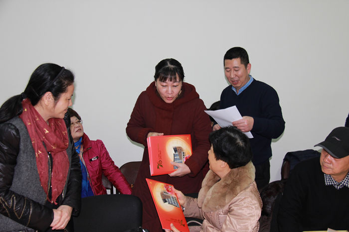 2015年为九三学社70周年华诞,支社为退休社员送上“九三学社70周年纪念邮票”作为节日慰问。社市委副主委黄少铭对支社在社会服务及敬老爱老方面的工作表示了肯定,并对支社明年的工作计划中结对友好支社一项表示期待,鼓励我院支社在参政议政方面继续努力,期待有更多的社情民意及提案。院党委副书记黄爱林肯定了支社去年以来的工作,并着重表扬了支社的几个特色活动,如社区定点定期坐诊、不定期社区义诊及授课、在各中小学校及幼儿园举办急救知识讲座、敬老爱老活动等。