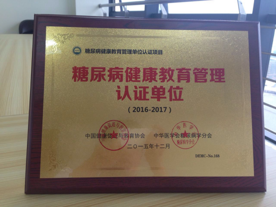 我院获得“中华医学会糖尿病学分会糖尿病教育管理认证单位”称号,标志着我院糖尿病教育管理工作迈上了一个新的台阶,不但为众多糖尿病患者的防治工作搭建了一个新的平台,还能对下级单位提供正式的糖尿病管理和支持服务。