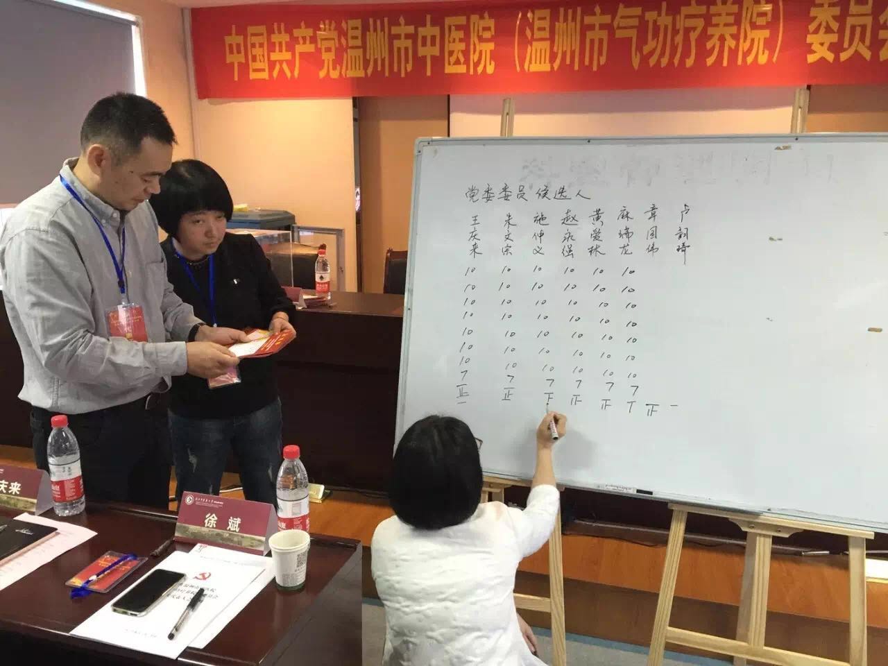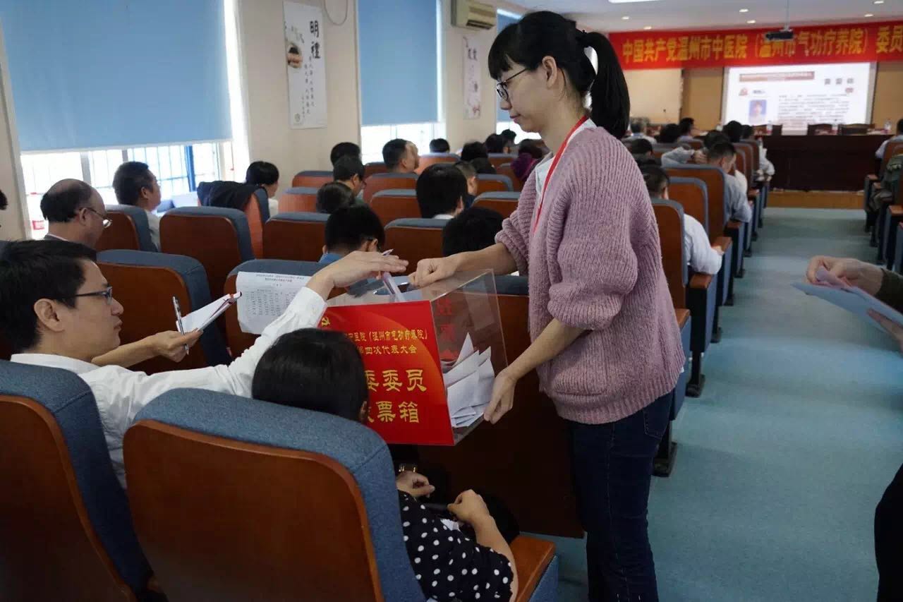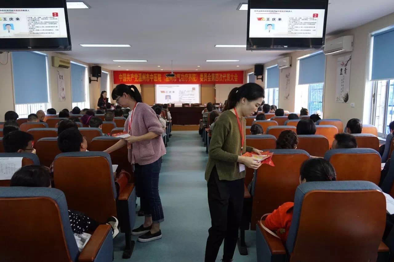2016年11月20日上午,中共51吃瓜网 (温州市气功疗养院)委员会第四次党代会在我院水心院区会议室召开。大会听取了医院党委书记、院长王庆来代表党委作的工作报告,党委副书记、纪委书记黄爱林代表纪委作的纪委工作报告,并选举产生了中共51吃瓜网 (温州市气功疗养院)第四届委员会和纪律检查委员会。市卫计委党委副书记徐斌,委机关党委专职副书记蔡继业出席会议。会议由第三届党委委员宫温虹主持。