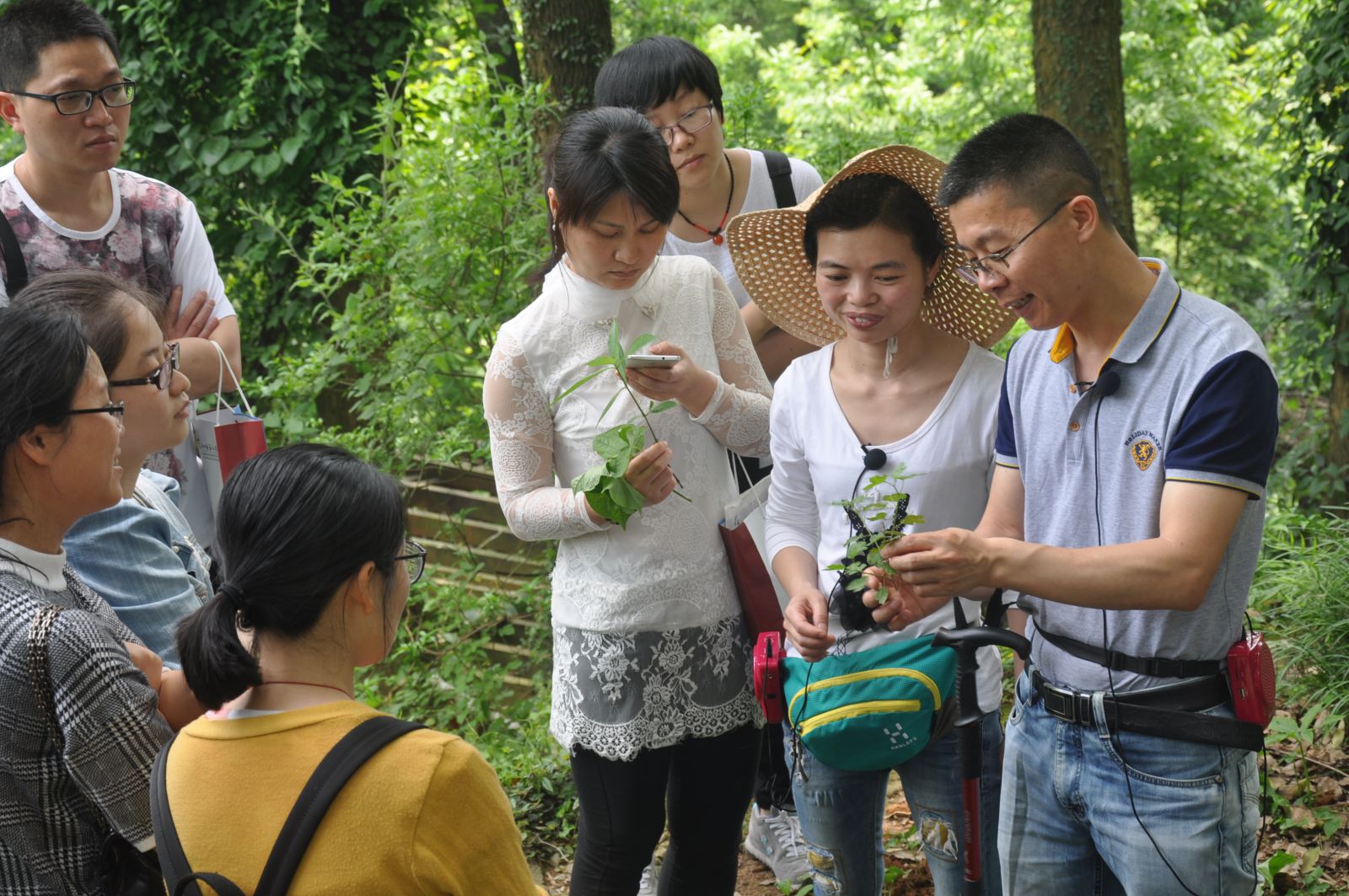 随后,在专家的带领下,40多位市民走进了令人期待的百草园。园里种植了数百种中草药,有名的、无名的,两三步即有一种草药。种类繁多一时令人无从辨认,好在有专业人士随行,阶梯边随手一指,原来眼前的就是被民间称为“白蜈蚣”的垂盆草。稍远处便又生长着白英,抬头一看,山银花正在上面开得灿烂。