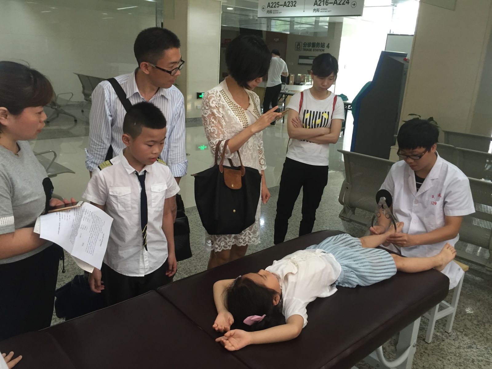 孩子的下肢常存在足弓高度不足(平足),足弓过高,跟骨外翻,前后脚掌不在同一平面,拇外翻,双下肢不等长,内、外八字脚等问题,早期足部生物力学干预可以很好地预防和缓解以上情况的发生和发展。为此,活动中,我院安排了康复部林大样等三位医生为孩子们一一进行了足型检测,并指导家长如何正确地帮助孩子矫正不良姿势,恢复良好的足型和体型。