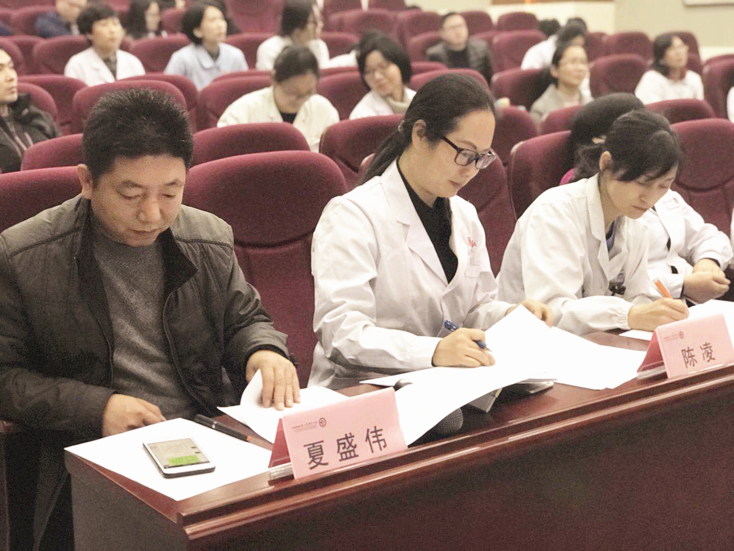 会议内容主要包含病史介绍、医务人员发言、专家评分、总结发言4个方面。首先由主管医师介绍病史及诊疗经过,来自本院不同专业的五位医务人员(包括药剂、康复、内科等专业)各自阐述该病历存在的问题与自身看法,提出讨论意见和治疗方案,随后由6名与会专家及旁听人员进行现场提问、评分,最后由缪心军副院长对本次讨论会进行点评并予以总结。病例讨论是培养临床医师临床思维能力的最好途径,鼓励各科室积极参与疑难病例讨论工作,创造学术争鸣氛围,加强多学科合作、互补,不断提升医院的学术与技术水平。