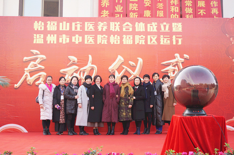 12月20日上午,怡福山庄医养联合体成立暨我院怡福院区开办仪式在景山怡福山庄隆重举行。温州市卫计委副主任吴尚斌、瓯海区副区长吕舸南、我院院长王庆来、温州市卫计委计划生育家庭发展处处长陈靖、温州市卫计委宣传处杨鹏、温州市社会养老服务指导中心主任陈娅莉、瓯海区民政局局长姜文龙、景山街道办事处书记叶展、温州市怡福山庄养老服务中心总经理陈建勇等领导和嘉宾出席了仪式。