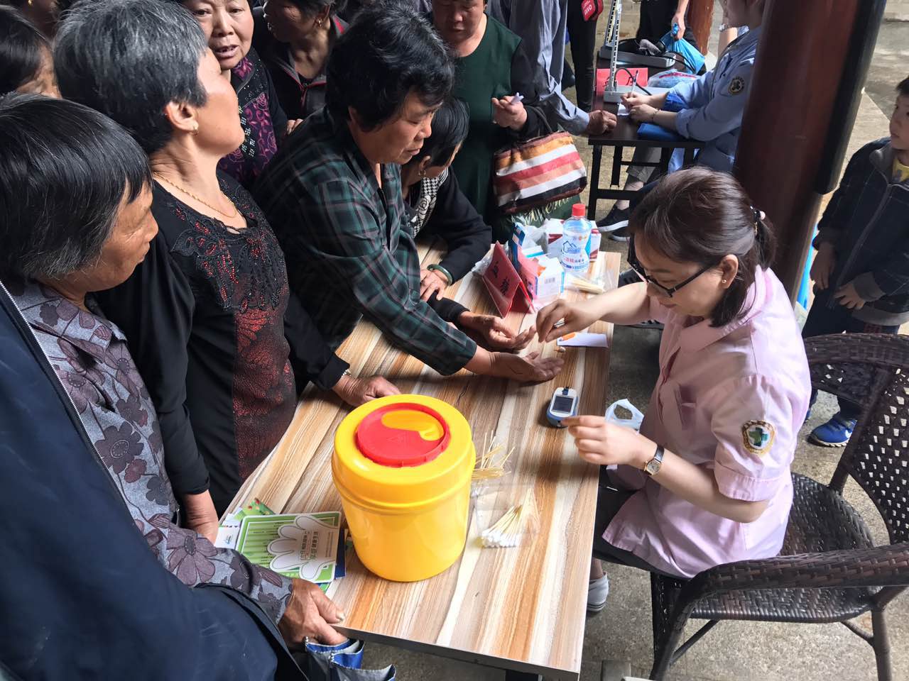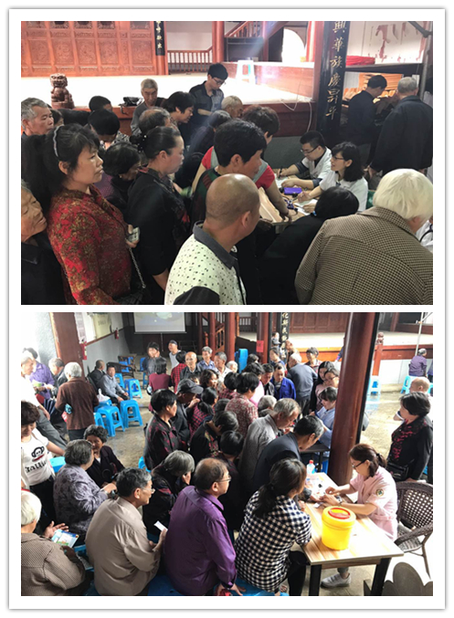 本次活动得到了温州中医院普安志工团队大力支持,我院由王庆来院长亲自带队组织了中医骨伤科、针灸推拿科现场看诊,并设有免费监测血糖、测量血压、健康宣教及发放健康宣教资料等服务,还带来了价值五千多元的免费药品,方便为村民看诊后直接配药。