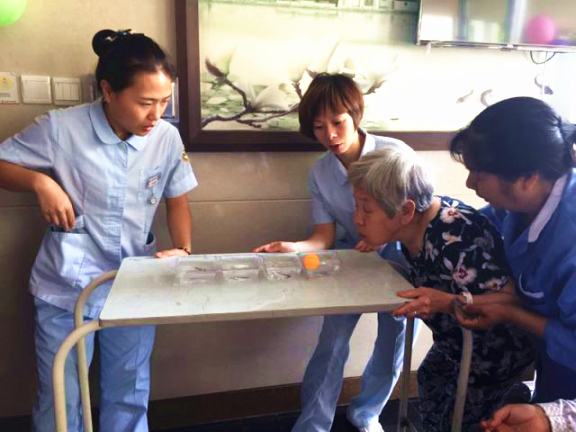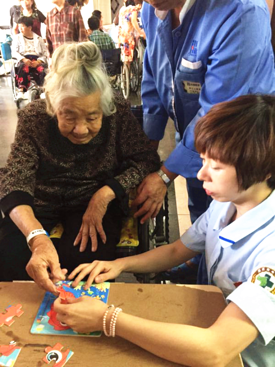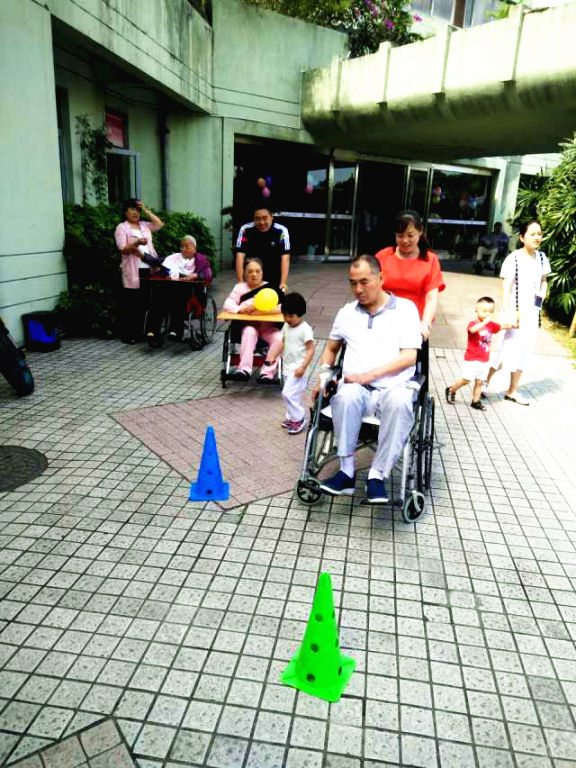 吃完薄饼,游戏也正式拉开序幕,“吹乒乓球”游戏可以锻炼呼气功能,70床的阿公作为种子选手首先出场,后面的“选手们”也不甘示弱纷纷挑战。“限时拼图”游戏需要在限定时间内将拼图完成,患者们各个摩拳擦掌,积极参赛。“轮椅障碍赛”让行动不方便的患者们也感受到了游戏的快乐,为久卧病榻的患者们带去节日的欢愉。