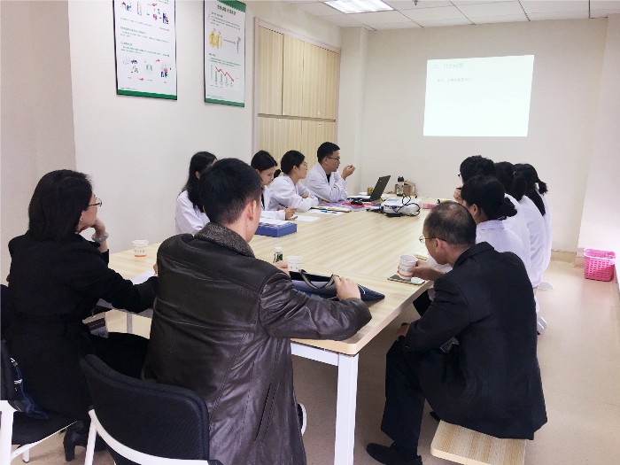 ,然后就住培基地基本情况、保障措施、培训管理、培训质量、存在不足、发展愿景等6个方面对我院的中医住培工作开展情况进行了全方位的汇报。紧接着评估组随机抽取骨伤科和心内科两个临床轮转科室进行科室住培工作开展情况汇报。
