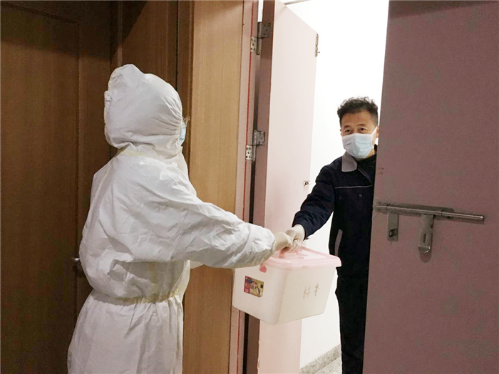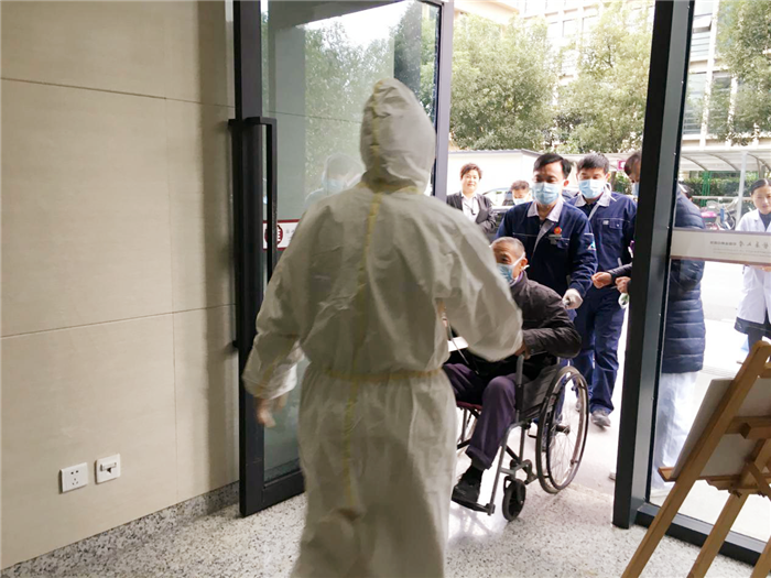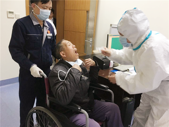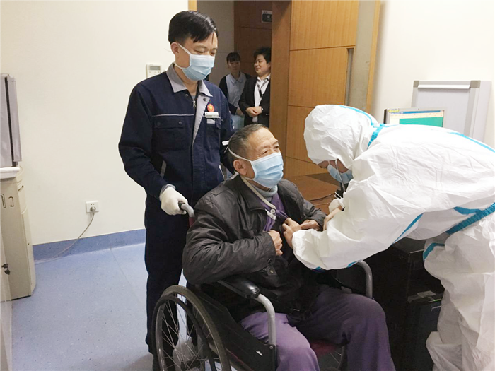 发热门诊医生引导病人至发热病房进行留观隔离