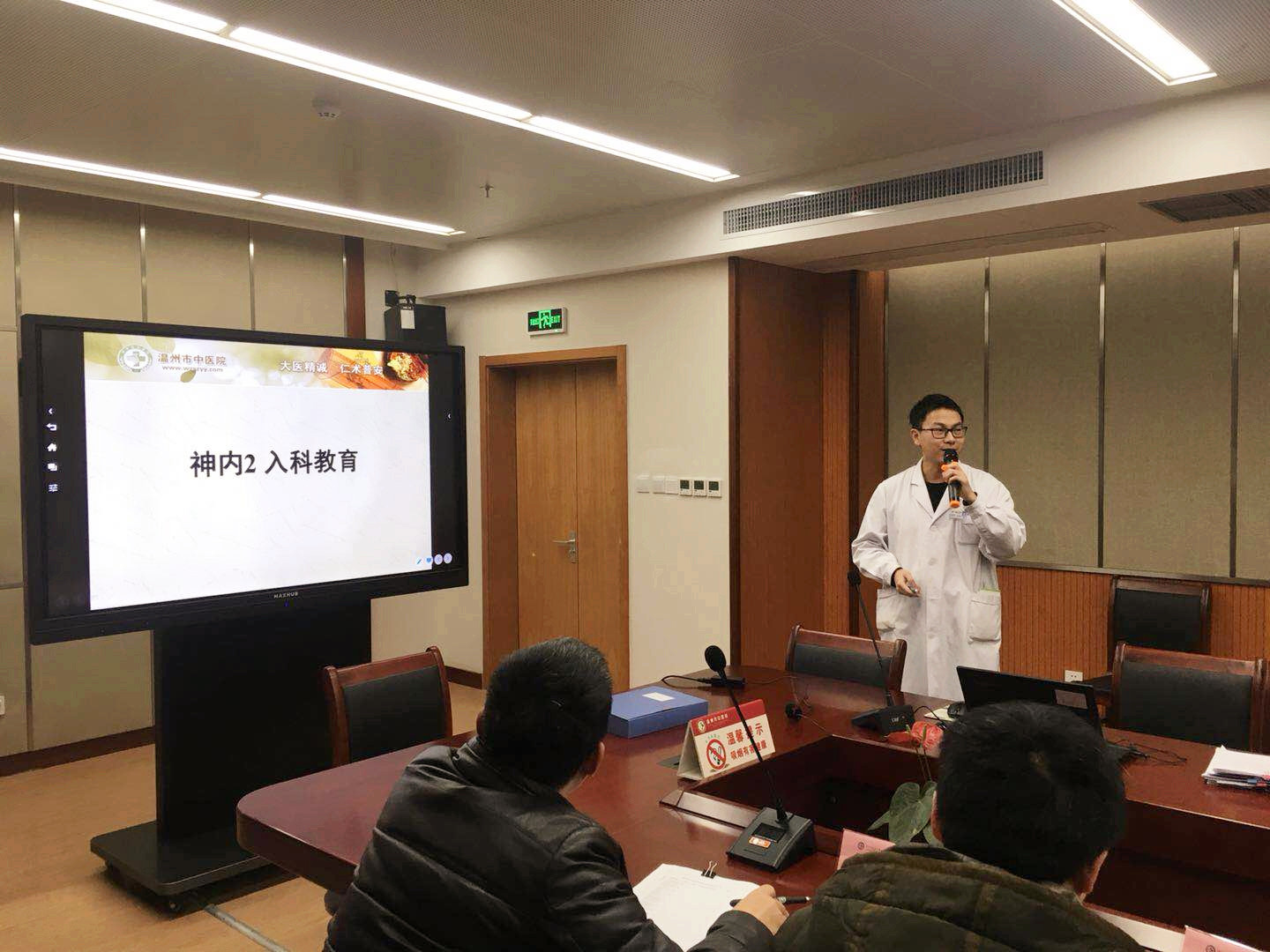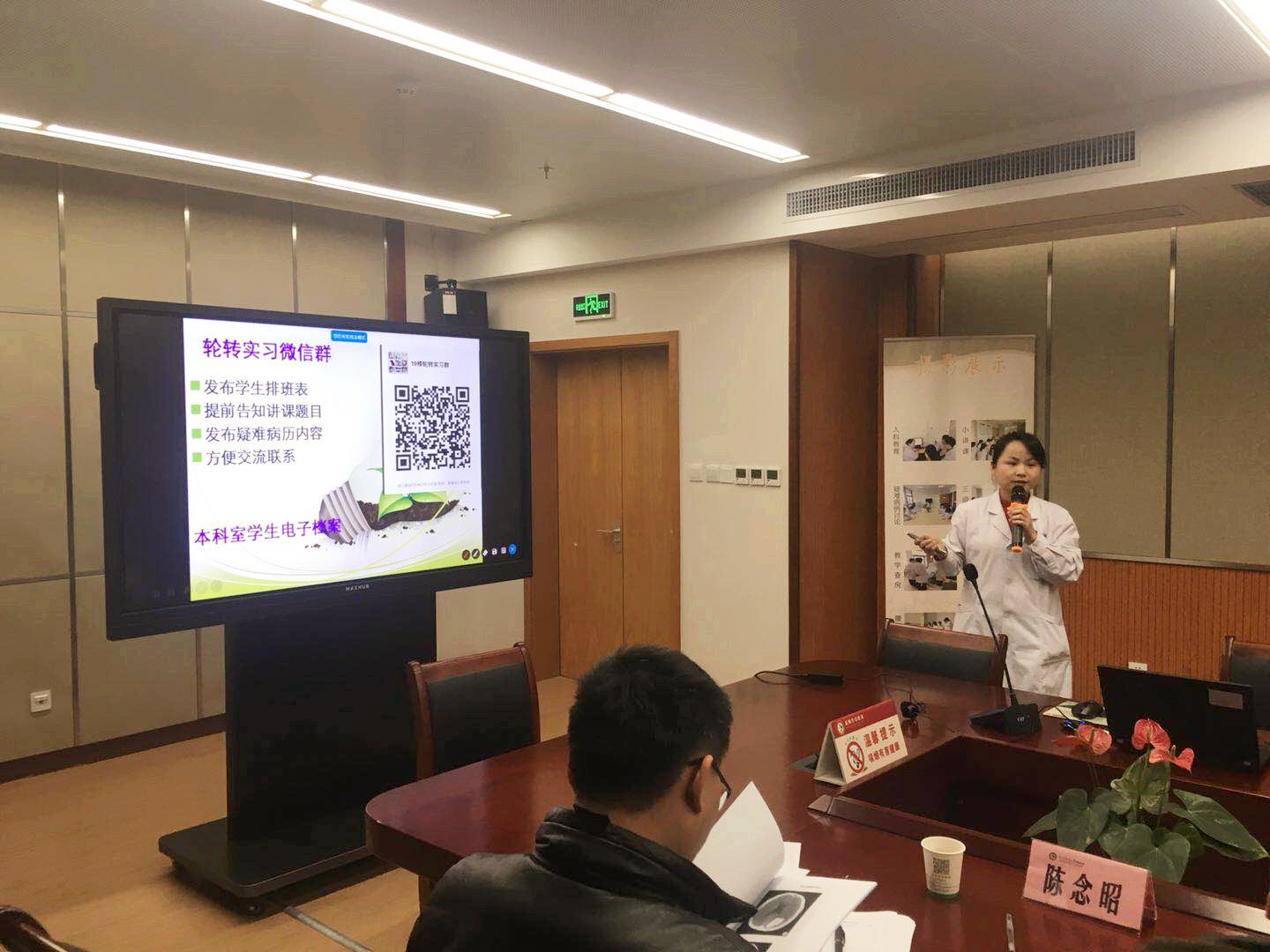各科室教学秘书进行了入科教育3—5分钟的展示,模拟了学生入科的过程。从科室成员组成、科室纪律(工作制度及请假制度等)、科室注意事项、科室需掌握知识要求、科室常见事故处理等方面进行讲解,旨在让每一位实习生、轮转生、进修生入科后明确知道自己该学什么,该学会什么,使他们在临床实践学习及参与值班过程中感受到自身价值。