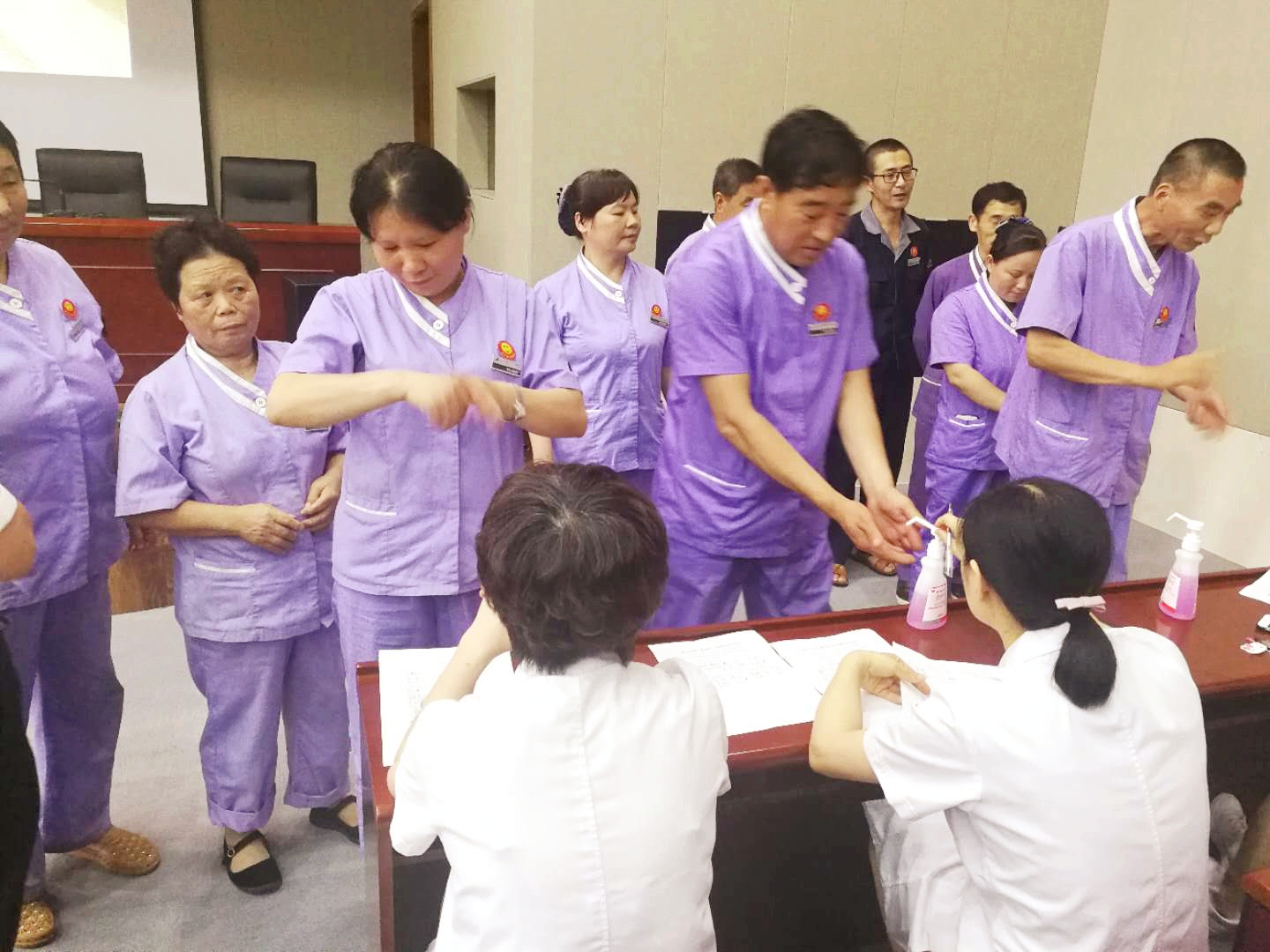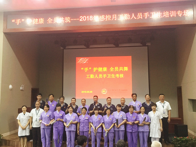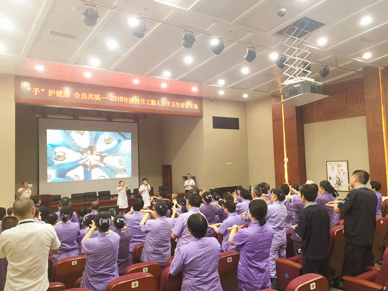 2018年5月28日中午,医院感染管理科配合外包工勤人员管理公司在综合楼八楼会议室开展以感控月系列活动为载体的手卫生专场培训,宣传感控共参与,手卫生人人都掌握。培训内容包括观看手卫生相关视频、示范七步洗手法与现场考核。培训现场工勤人员认真观看视频,并不时地跟着节奏练习。视频结束后,院感科工作人员逐一对工勤人员的指甲、戒指等进行检查并考核七步洗手法,分出熟练、合格、补考档次。最后评出一等奖10名,二等奖20名,三等奖30名,分别给予相应奖励。此次活动得到了大家的肯定与欢迎。