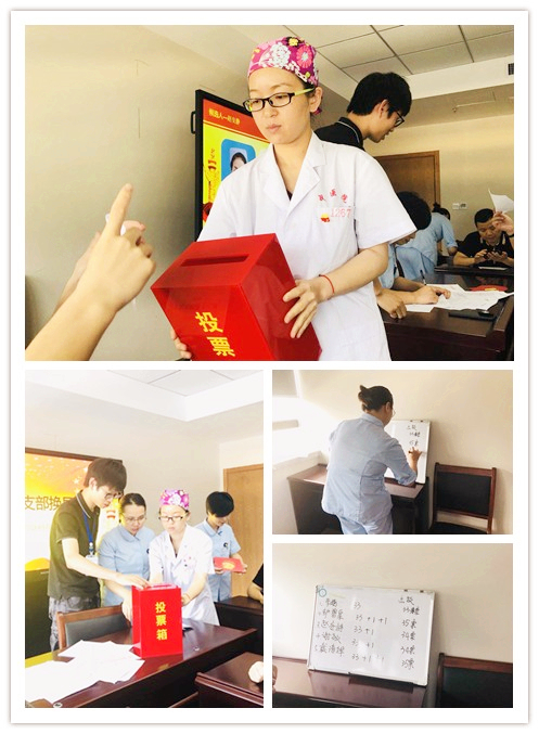 随后,我支部根据《中国共产党基层组织选举工作暂行条例》的有关规定及机关党委支部换届的批复,由支部书记戴清辉同志主持选举工作。戴清辉同志通报了到会党员人数,到会人数符合党章和基层党组织换届选举的相应规定,支部换届选举会议正式开始。根据选举程序,戴清辉同志宣读了选举办法和候选人名单,推选并通过监票人、计票人、唱票人名单。在投票环节中,门诊支部严格按照公平、公正、公开的原则,在监票人的监督下,经过计票人、唱票人清点选票确定选举有效并宣布选举结果:戴清辉、邹碧泉、谢敏、朱婧、赵安静五名同志当选为门诊党支部新一届委员会委员。选举结束后,黄爱林副书记对此次门诊党支部的换届选举的圆满举行表示赞许,总结并强调党员的四个意识:政治意识、核心意识、大局意识、看齐意识。