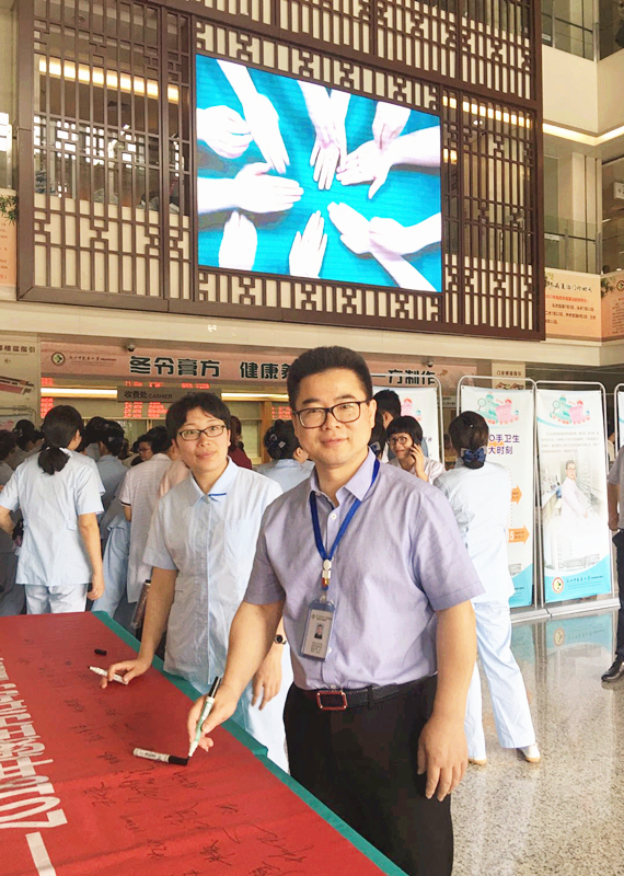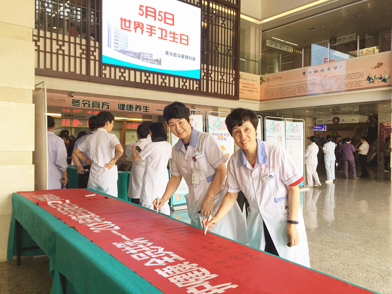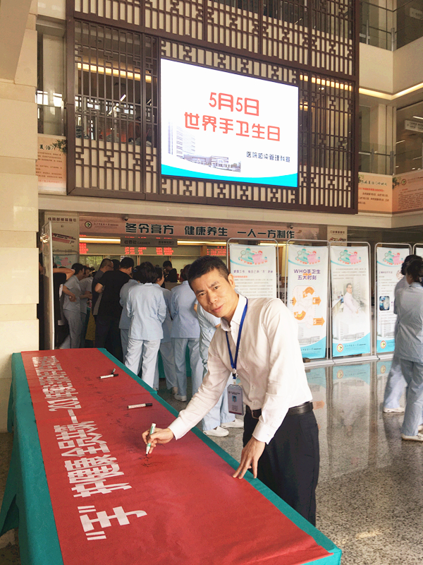 2018年5月5日是第十个世界手卫生日,今年的活动主题为:“预防医源性败血症——机遇在你手中”。5月8日上午,《“手”护健康全员共筑》暨“世界手卫生日”现场宣传活动在六虹桥院区门诊一楼大厅举行,活动旨在推动大家手卫生的落实,强化手卫生知识,提高手卫生的正确性和依从性,有效防控院内感染的发生。王庆来院长担任了医院手卫生形象大使。