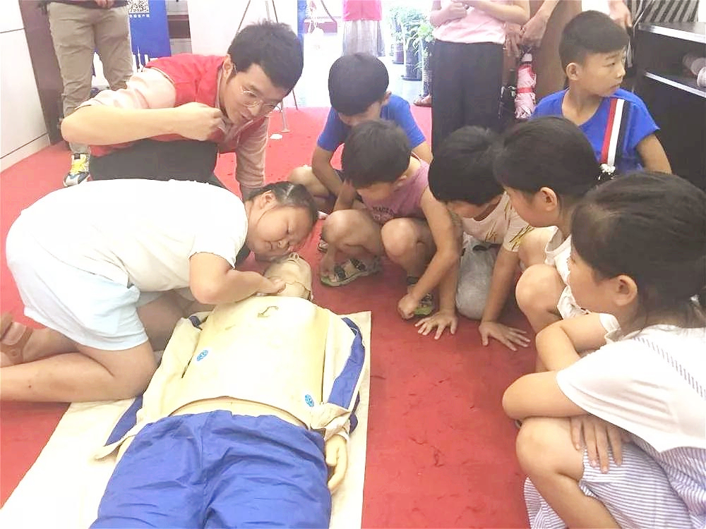 7月10日,我院行政后勤党支部联合丽庆社区开展“共建单位共保平安”主题日活动,旨在普及急救知识,提高社区学生在各种突发事件中应急处理能力和掌握日常生活中遇到意外伤害正确自救互救的技能,活动特邀我院急诊科徐卡医生对丽庆社区暑期学生进行急救相关知识培训。