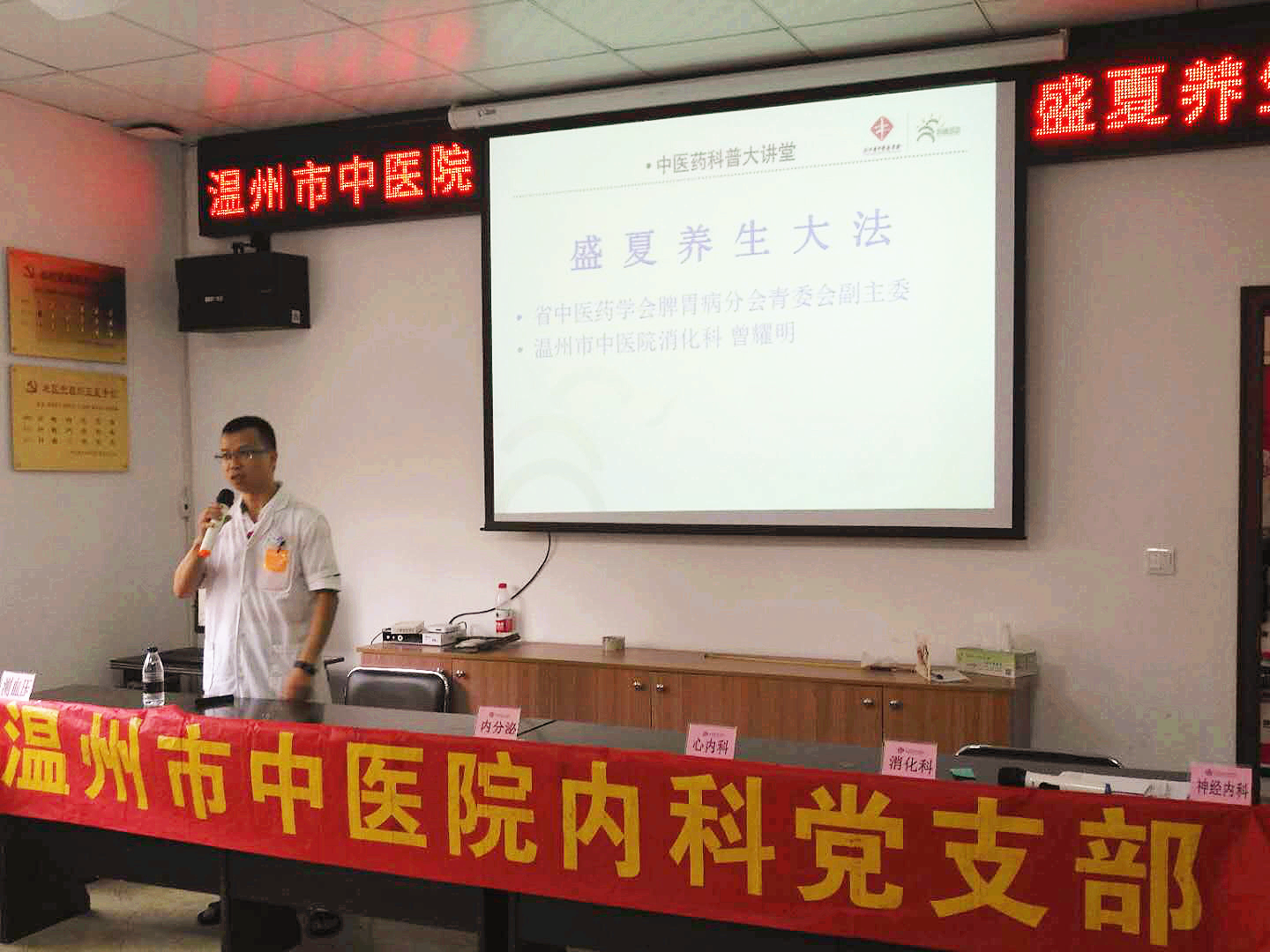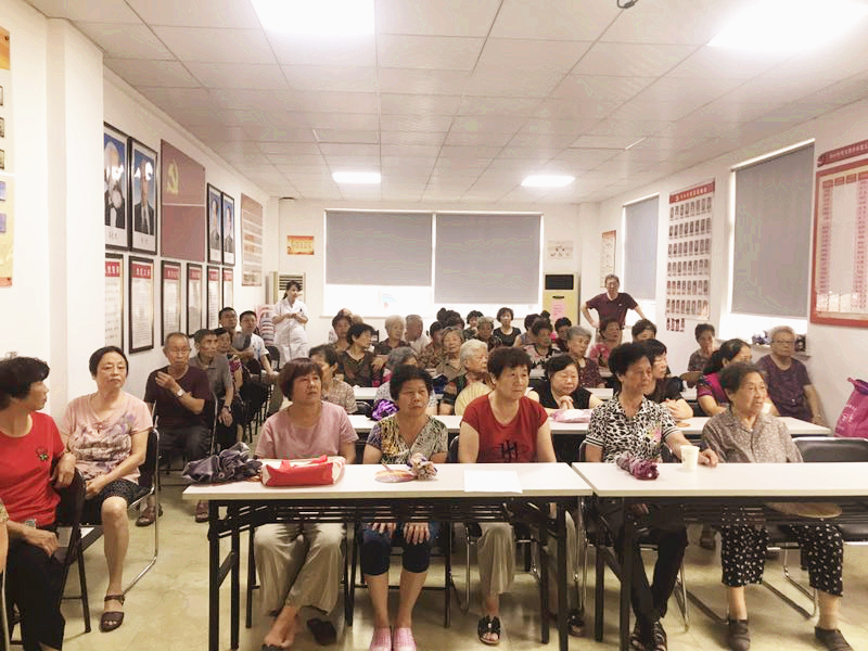 银龄之家内,居民已守候多时,场面热闹非凡,首先,曾耀明主任医师开展了关于盛夏养生大法健康知识的专题讲座。他从起居调养、饮食调养、冬病夏治、夏季养心、运动调养这五方面切入,重点介绍了夏季养生原则、八招预防中暑、热中风预防方法等实用性较强的养生方法。