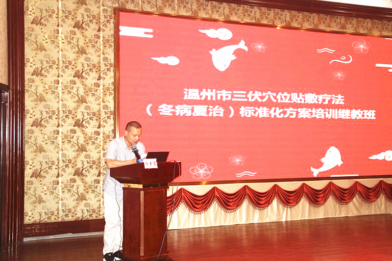 此次继教班的主题是在中医药“治未病”理论指导下,探讨在三伏穴位贴敷疗法(冬病夏治)方面,从药物的选择、制剂、穴位的选择、敷贴病种的选择应用、适应症、禁忌症、敷贴的注意事项等,形成统一的标准化方案,达到更好的治疗效果。在温州地区推广三伏穴位贴敷疗法(冬病夏治),形成温州特色。