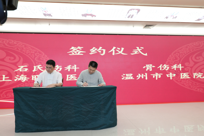 9月9日上午,我院在六虹桥院区举行与上海曙光医院合作签约,授牌仪式。“石氏伤科”第五代传人,上海曙光医院詹红生教授代表上海曙光医院骨伤科与我院骨伤科签署合作协议,在我院成立国家中医药管理局石氏伤科流派传承工作室(温州)二级工作站和詹红生上海市名中医学术经验研究(温州)工作室。仪式上还举行了传承拜师活动。
