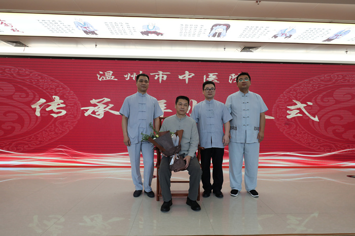 此次合作基于我院与上海曙光医院开展的一系列合作项目,上海曙光医院选派专家团队,对我院医疗、教学、科研、管理等方面进行指导,进一步提升我院的医疗技术实力和影响力。我院将以此次合作为契机,依托上海曙光医院骨伤科的资源优势,通过专家坐诊、查房、带教等形式,学习先进的临床技术、科研方法、人才培养措施等,进一步提升本院乃至本地区骨伤学科的技术水平,同时也让温州地区老百姓有机会享受到国内知名专家的优质服务。签约,授牌仪式之后,我院王庆来院长等3位学生通过行中国传统拜师礼仪,拜詹红生教授为师。学生们向詹红生老师敬茶,递上拜师贴和鲜花,詹红生老师收过拜师贴,饮过学生的敬茶后,向学生们递还回徒贴,并将一幅他亲手所著,写有“学而时习之”5个大字的书法作品赠与学生,代表着他对学生勤于学习、善于学习、温故知新、不断进步的期望和要求。