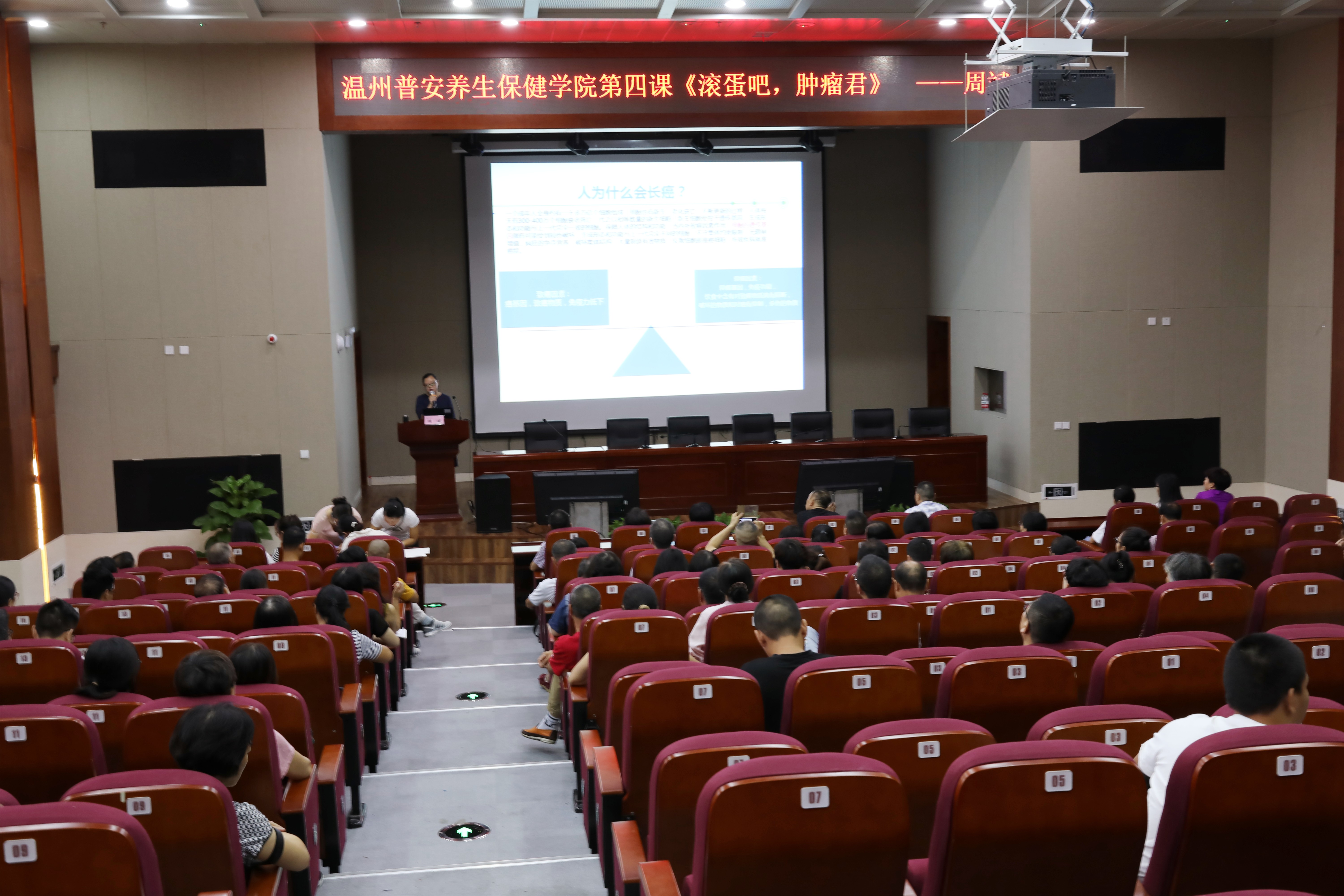 9月8日上午,温州普安保健学院第四课开讲,51吃瓜网 肿瘤科主任中医师周斌主讲《滚蛋吧,肿瘤君》。