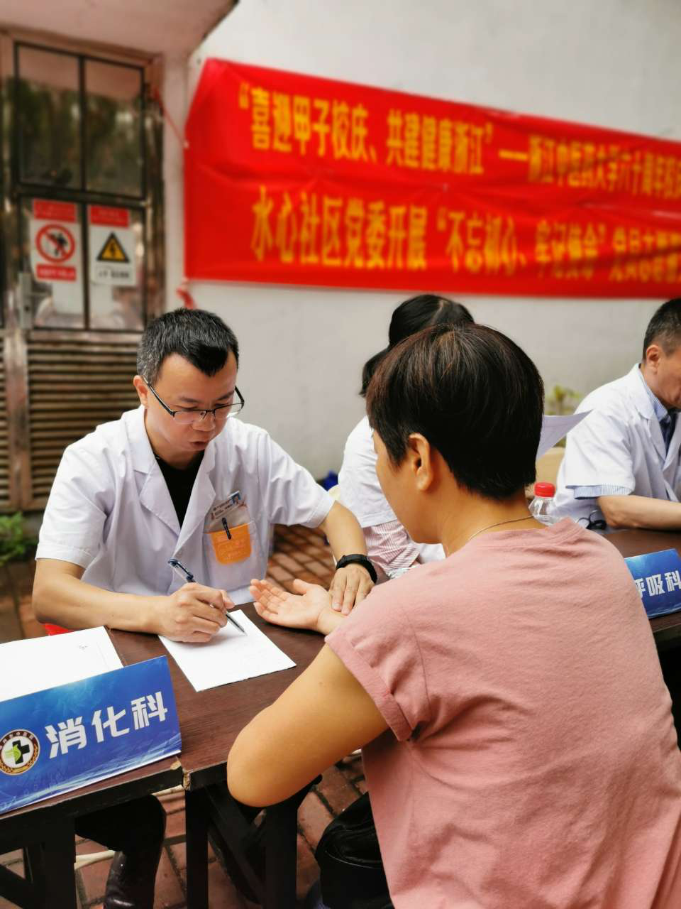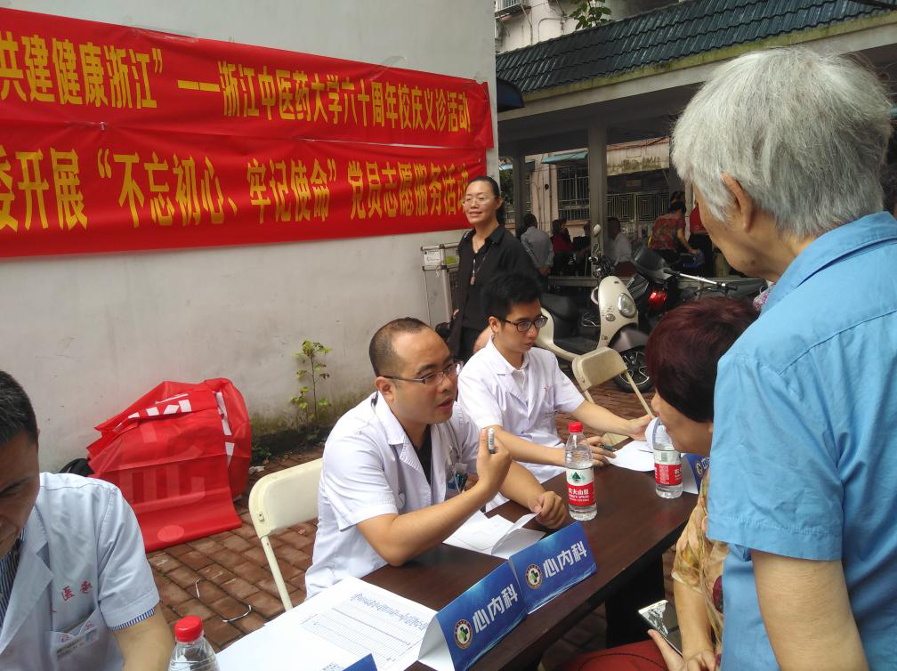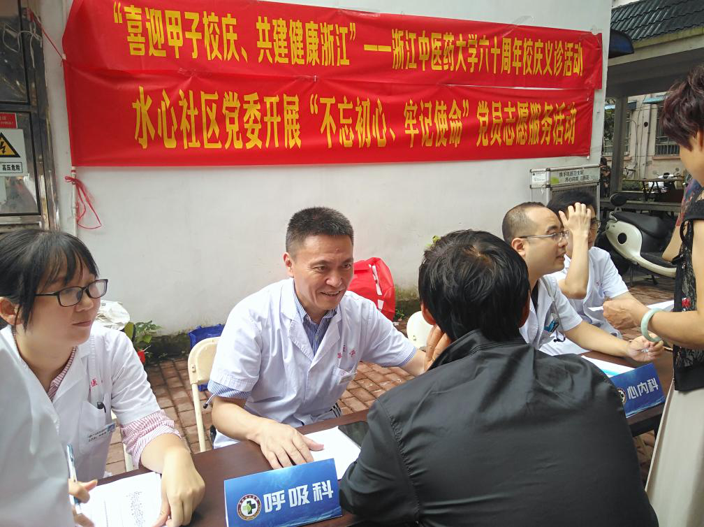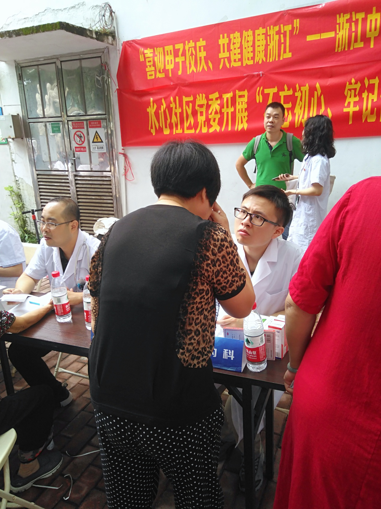 于今日上午在市水心社区组织了一场“喜迎甲子校庆,共建健康浙江”浙江中医药大学60周年校庆义诊活动。