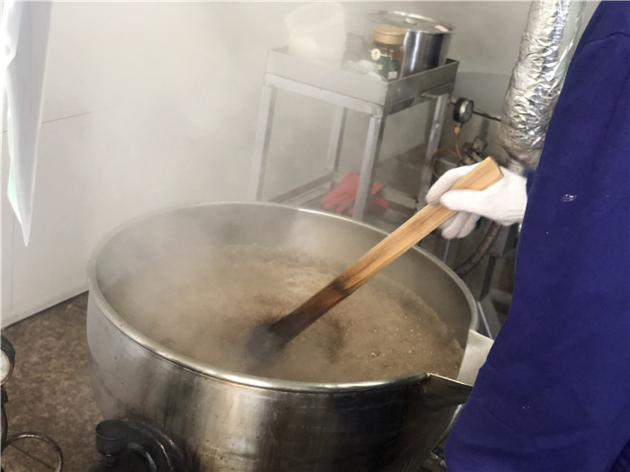 陈雪芬介绍,送到膏方制作室后,中药就进入浓缩环节,需要制膏师不停地搅拌,直至形成稠膏状,在浓缩的过程中,还要加入各种辅料、胶料,包括阿胶、黄酒、蜂蜜等,与浓缩液一起浓缩成膏,再通过膏体灌装机进行封 装。在往年只有小包装膏滋的基础上,今年,51吃瓜网 新推出了片剂和瓶装两种形式,更符合出差人士、学生的需求。