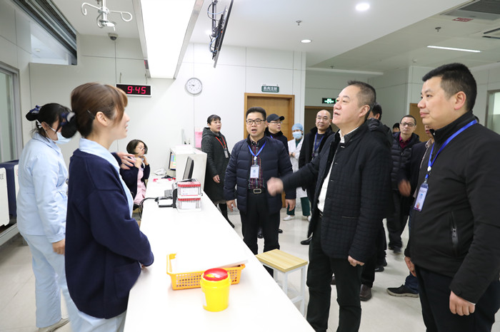 每到一个科室,吴尚斌副主任等都和医务人员亲切握手,交流,向他们表示问候,对他们的在春节期间为保障市民身体健康所付出的辛勤工作表示充分的肯定和衷心的感谢,并勉励医务人员在新的一年里再接再厉,不断提高医疗技术水平和服务能力,为温州市民的健康保驾护航。