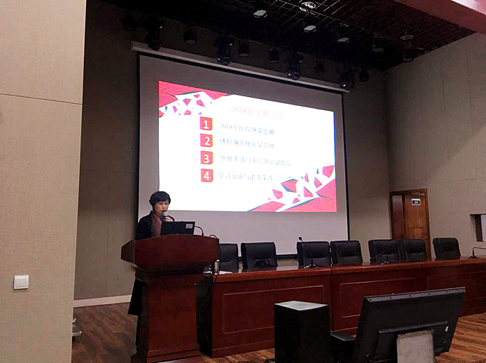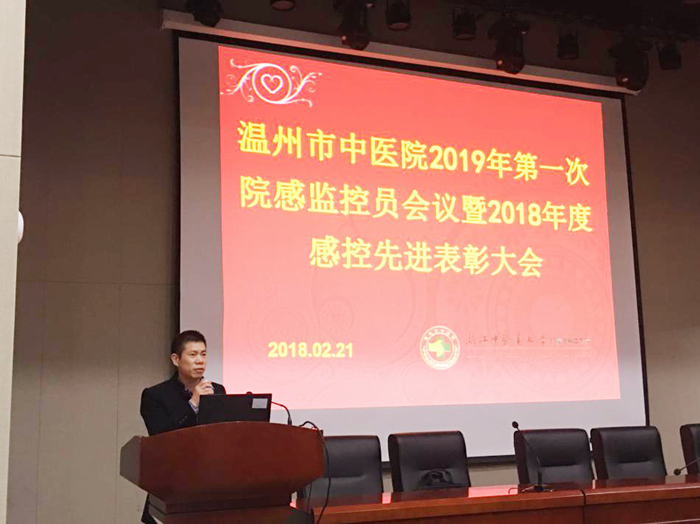 院感科徐玉燕科长做2018年度院感工作总结和2019年院感工作计划,感谢了医院监控员们对医院感控工作的支持和付出的努力,汇报了2018年医院的感控工作取得的成绩:院感团队荣获2018年度温州市医院感染管理“优秀团队”称号;二人荣获2018年度温州市医院感染管理优秀工作者称号;在世中联医院感染管理专业委员会第三届学术年会的“感染防控——说出背后的故事”征文——演讲比赛活动中,我院选手分别荣获一等奖、二等奖和征文优胜奖。她还明确了院感工作2019年的重点为三甲中医院等级复评工作、中医医疗技术感控SOP落实、感控PDCA比赛等。