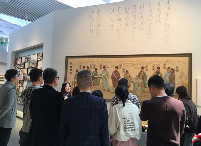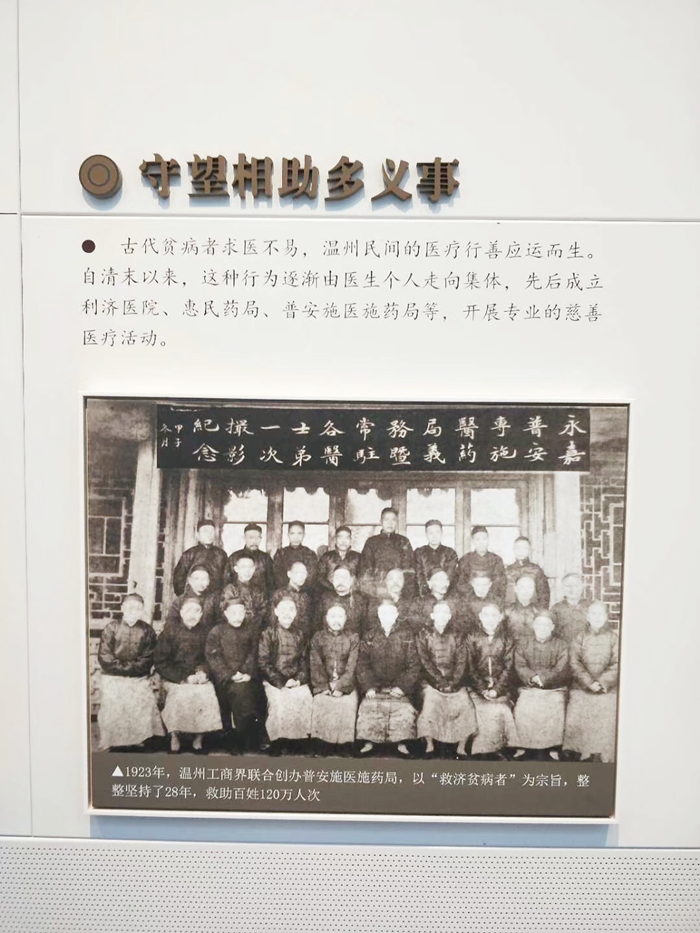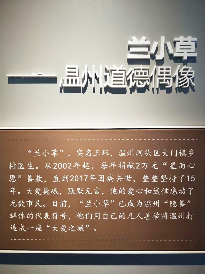 一进入馆内,党员们就被标志性的“德”字碑吸引 ,随后通过馆内讲解员的认真介绍,从“育德之壤,以义为利”、“厚德之用,传家继世”、“重德之举,光耀神州” 、“同德之美,成风化人”四大主题了解了温州这座温暖之城的历史变迁,感悟了瓯越文化的魅力,知晓了温州传承的良好家风,古今的文化先贤们的故事,以及发生在温州的许许多多的善心义举,感动温州爱心城市的道德魅力。道德馆不仅展示了大量的珍贵的资料和精美的艺术展品,还采用了先进多媒体技术,生动形象地为党员们描述了一个个感人的故事。当看见我院前身普安施医施药局的珍贵资料时,大家都备感亲切和自豪。最令人感动还是温州城里的爱心善举,有一杯茶温暖一座城的“红日亭”,有每年捐赠2万爱心善款的“兰小草”,还有很多普普通通的红马甲志愿者,爱心人士的无私奉献,这些汇集成了温州的道德风尚。