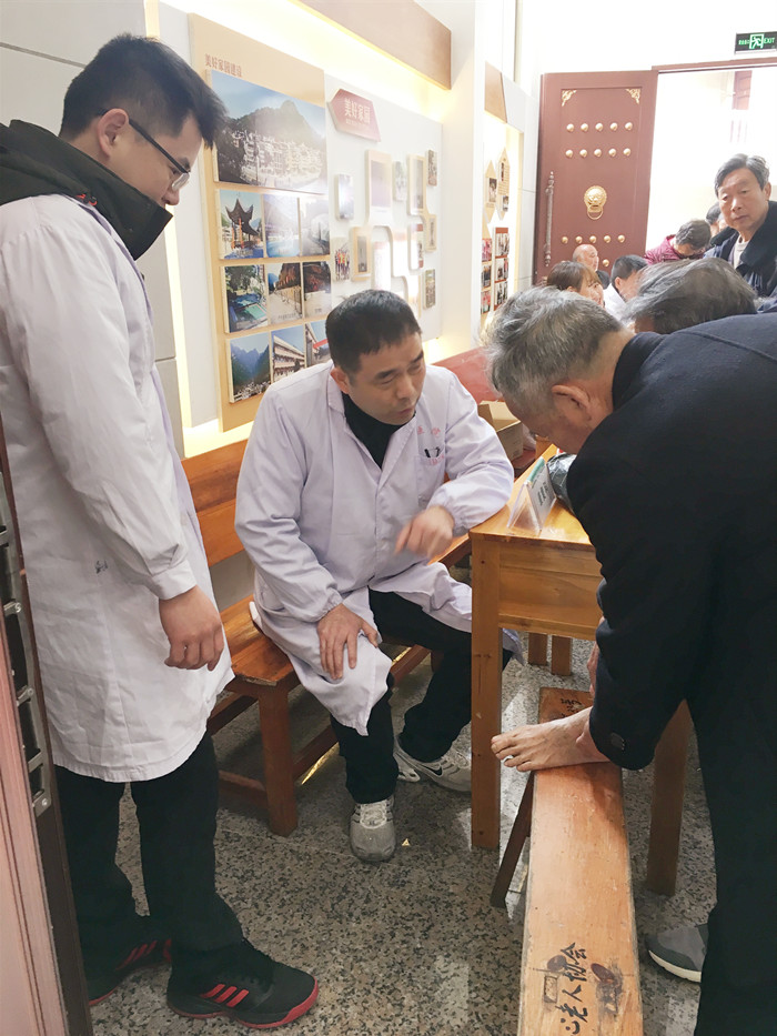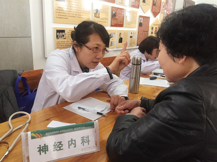 为了使现场的老人们都能听懂,胡主委用温州本地方言讲述,并放缓语速,胡主委讲授的健康知识贴近生活,语言表达幽默风趣,迎得听众的阵阵掌声,尤其是讲到“中风评估3步曲”时,胡主委边讲解边演示,让老人真正掌握这一方法。义诊现场,我院骨科、皮肤科、神经内科、中医内科的医生们在现场提供坐诊和咨询。医生详细询问群众的病情,耐心解答就诊村民提出的各种问题,进行常见病、慢性病的咨询、初步筛查、诊断,并普及医学常识和健康知识,农工党总支还特别安排了检验科副主任进行体检咨询,两位护士测量血压血糖。义诊活动结束了,邻村的老人才赶过来,胡主委二话没说,又重新坐下来为村民诊断开方。